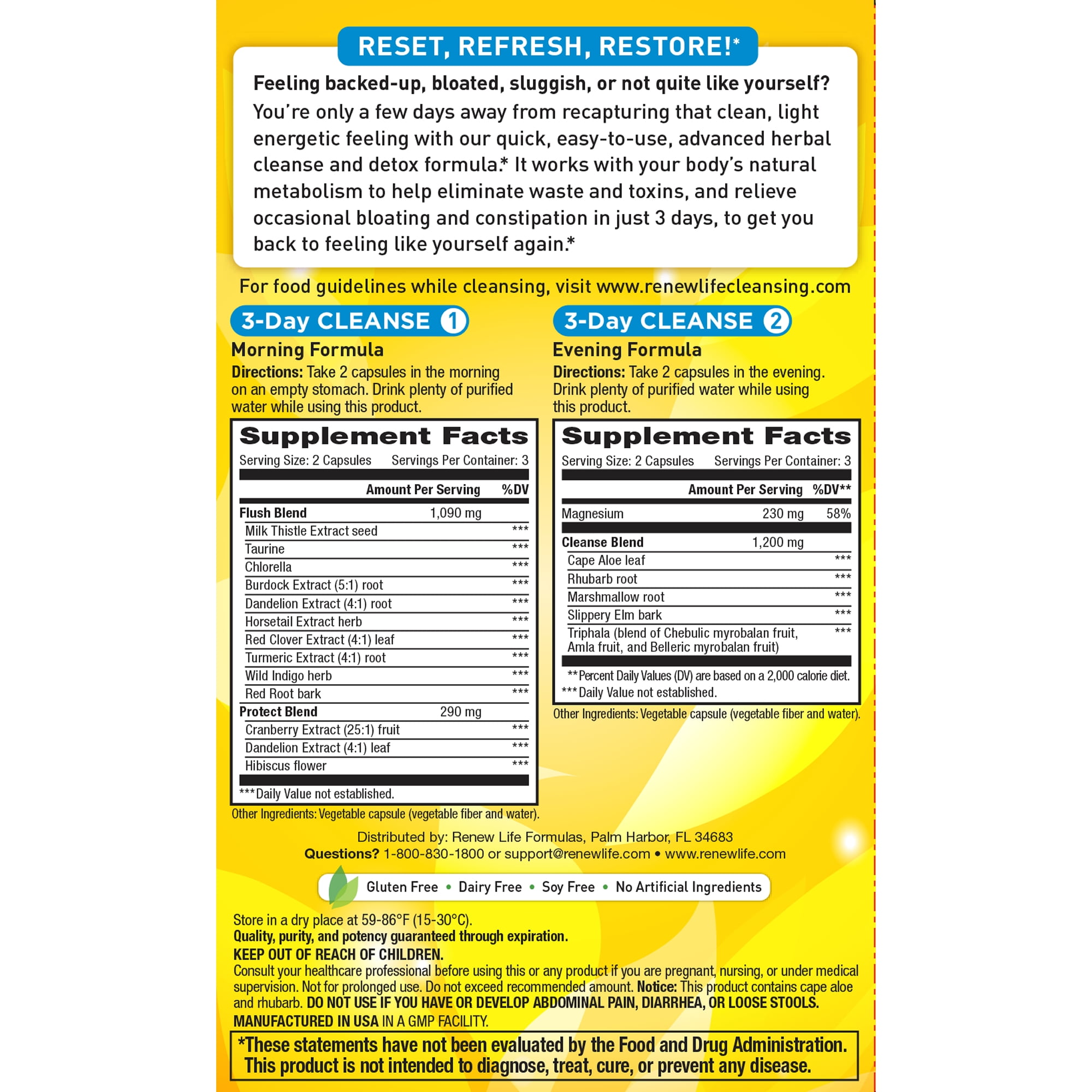 The Renew Life 3-Day Cleanse works in reducing bloat and water retention Eating too much at a time disrupts the cleansing process plan to fast for 12 to 16 hoursThe night before you start.